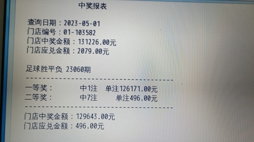 5月1日,足彩胜负游戏第23060期开奖,位于绍兴诸暨市暨阳街道永昌路下坊门新村7号3306053062实体店传来喜讯,该店一名幸运购彩者葛先生喜中一等奖1注、二等奖10注,共计收获奖金131131元。 据该体彩实体店代销者李先生表示,葛先生既是一名资深购彩者,也是一名足球迷,平日里对各大足球