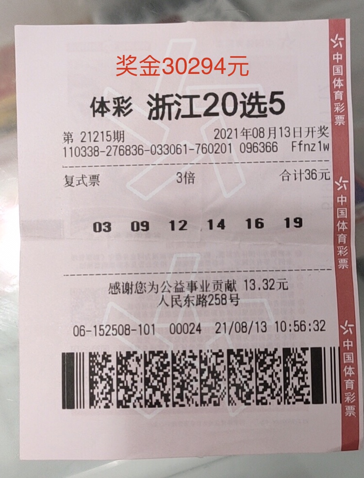 8月13日晚,体彩“20选5”第21215期如期开奖,位于绍兴新昌县人民东路258号3306152508体彩实体店传来喜讯,该店购彩者杨先生凭借一张36元倍投复式票喜中当期“20选5”一等奖3注、二等奖15注,共获奖金额为30294元。 据代销者吕女士了介绍,中奖的杨先生购彩已经有些年头,比较偏爱乐