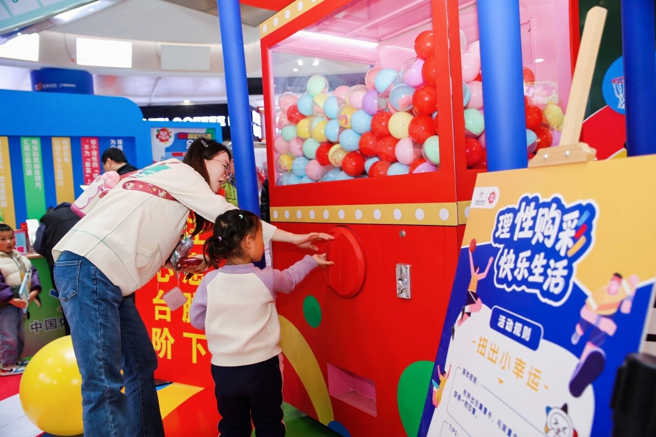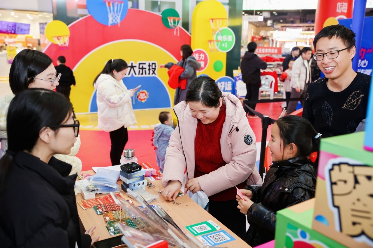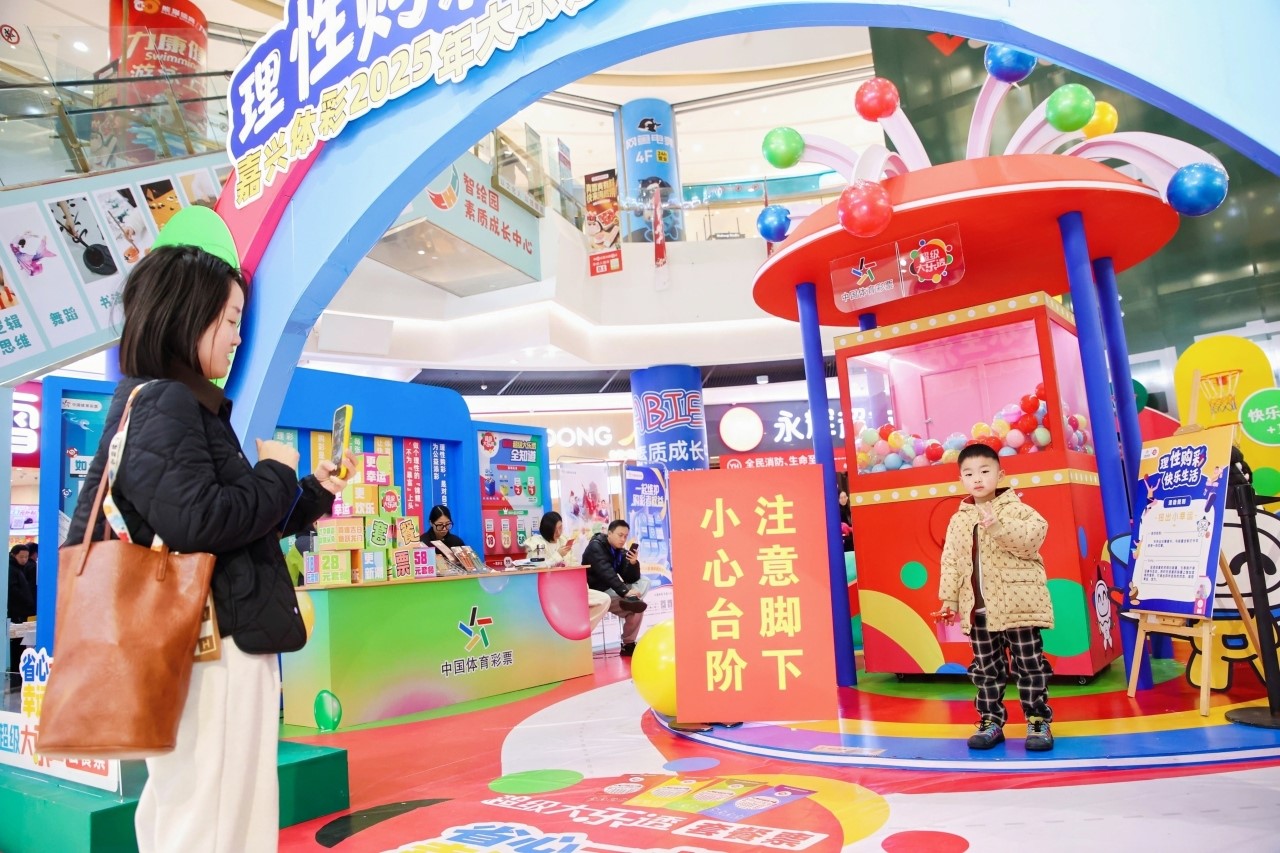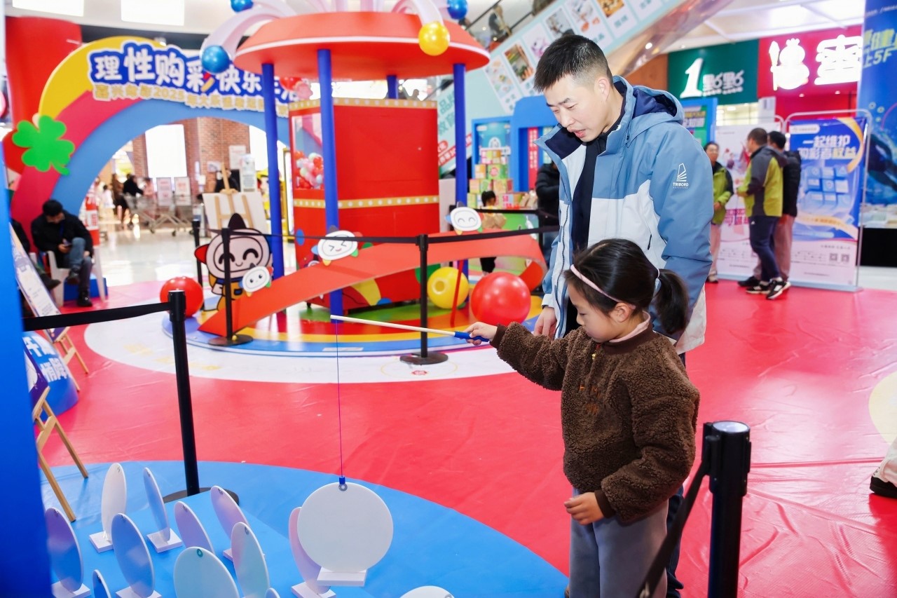 “爸爸,你刚才没投中,看我的!”7岁的奕可小朋友攥着多巴胺色彩的篮球,掂起脚尖奋力一投,篮球应声入网,引来周围大人的阵阵喝彩声。“孩子很喜欢这样的互动游戏,一定要来玩。”带着孩子逛超市的李女士一家,被“幸运搭子欢乐节”热火朝天的欢乐现场吸引了进来,于是和孩子一起组成了“幸运搭子”,把所有互动游戏都玩了一遍,“我们最喜欢莫‘钓’以轻心这个游戏,一边体验‘垂钓’的乐趣,一边还能学习理性购彩知识,很有意义。”