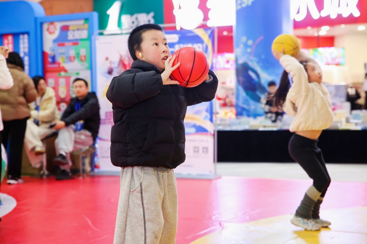 “投中了!投中了!”随着一声欢呼,名为“超级大乐投”的互动区域率先引爆了现场气氛。这项升级后的投篮挑战设置了“二选一”模式,要么一次性投入右侧双篮筐,要么在15秒内命中左侧篮筐,激发了许多大人、小孩的“斗志”,无论准求精准的成年人,还是跃跃欲试的小朋友,都在此展开了激烈“比拼”。