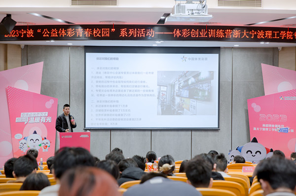 11月14日,2023宁波“公益体彩 青春校园”系列活动——体彩创业训练营浙大宁波理工学院专场活动顺利进行。200余名青年学子现场深入了解中国体育彩票相关知识和公益属性,学习、咨询体彩创业方式方法,通过一场热烈互动,为今年体彩创业训练营活动圆满收官。