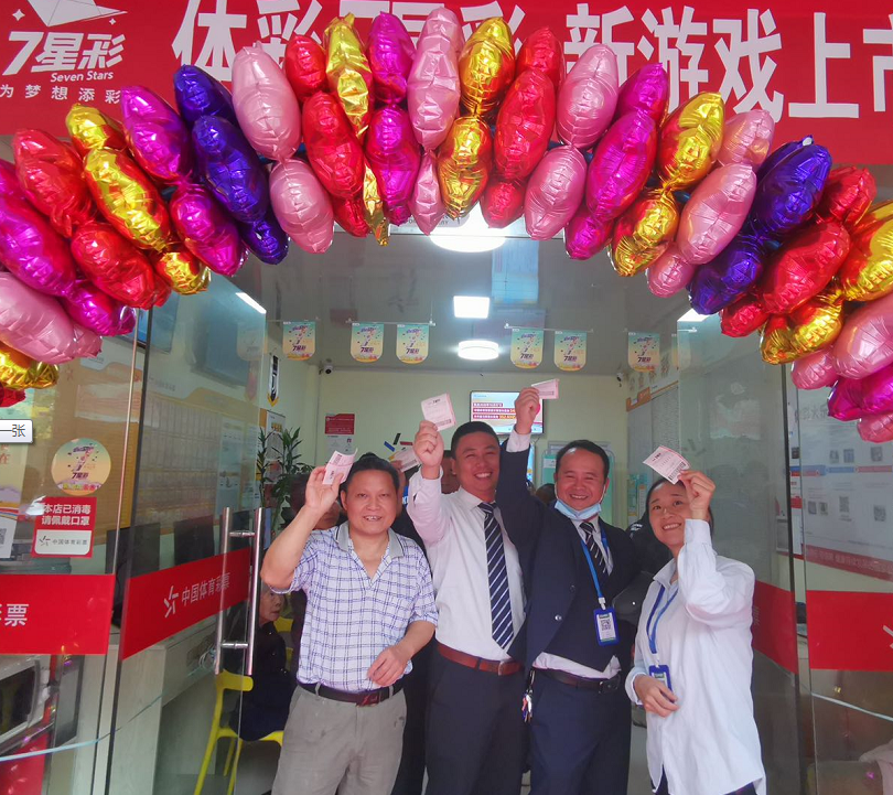 衢州体彩中心的工作人员和实体店业主早早的着手准备迎接“7星彩”上市。沈家实体店活动现场彩绸凌空飞舞、鲜艳拱门醒目竖立、鲜花整齐摆放、礼花绚丽绽放,体彩店里里外外装扮一新,海报、横幅、展架、红地毯处处都透着浓郁的上市氛围。身着红背心的工作人员为购彩者详细耐心讲解“7星彩”新游戏的规则、亮点和优势;免费给在场的人们分发“7星彩”红包。一时间,体彩实体店内挤满了路过的、周边的市民群众,店内的购彩者说着笑着络绎不绝。现场参与热情极高,实体店的人气瞬间燃爆。