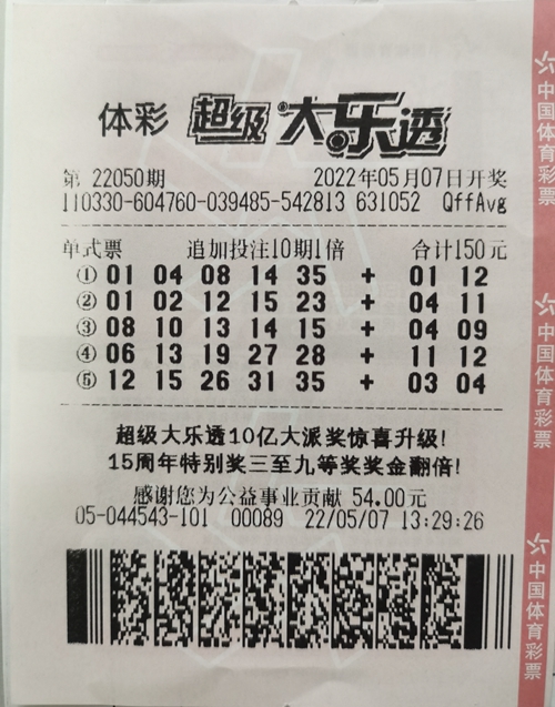 5月18日晚,位于南浔镇旧馆街道同心路118号的3305044543体彩实体店传来喜讯,一购彩者喜中第22050期体彩大乐透二等奖,奖金共计71.6609万元。据该实体店销售员介绍,中奖者是店里的一位常客,他购买体彩大乐透有一个特点,那就是喜欢购买多期票。这次买的是单式票且追加投注,购买了10期。