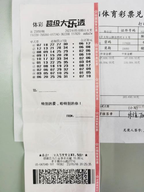5月22日,体彩超级大乐透第23057期开奖结果揭晓后,位于湖州市吴兴区定安街21号的3305043662体彩实体店即刻沸腾了——该店一举中出2注大乐透一等奖,单票奖金高达2000万元!据了解,体彩超级大乐透当期的开奖号码为“01、05、06、19、24+05、11”,全国一共中出8注一等奖,其中