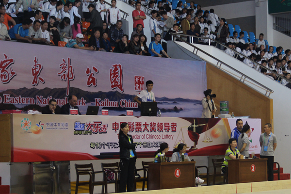 近日,2014年世界地掷球(塑质球女子团体)锦标赛在浙江开化县举办。这是该赛事第一次在亚洲举办,共有中国、意大利、澳大利亚、阿根廷、德国等近20个国家的代表队参赛,国内外各主流媒体也来到开化对此次比赛进行了大力宣传报道。 借此良好的契机,衢州市体彩中心开展了一系列活动。首先,在比赛主会场裁判人员座