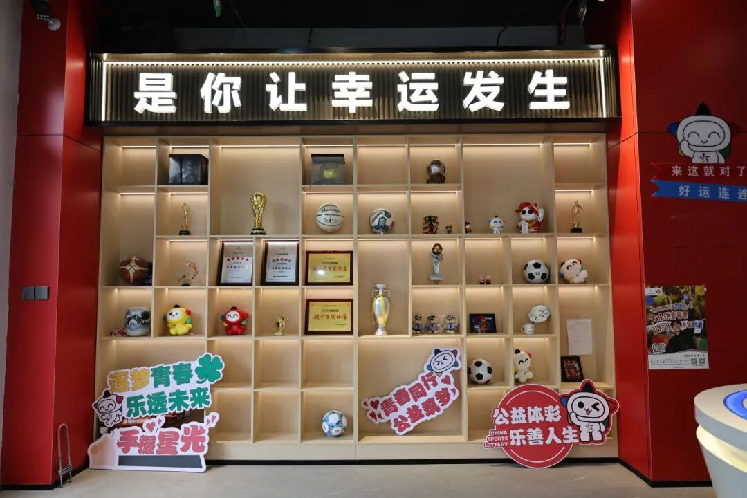 还未进店,就能看到他对 “体彩场景” 的全新解读:门口的迷你足球场模拟场景,是他想起小时候陪父亲看球赛的快乐时光,用翠绿草坪与小巧球门,唤醒更多人对运动的热爱;旁侧 “青春同行 公益筑梦” 的打卡架,是他希望让公益不再 “默默无闻”,而是成为年轻人愿意分享、传播的潮流符号;就连红白色相间的门牌,他都特意选择线条圆润的设计,“就像小时候父母对顾客的态度,亲切又温暖,不想让大家觉得有距离感”。每一处细节,都藏着 “彩二代” 对行业底色的坚守,与对年轻审美的贴合。