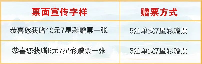 注意事项:7星彩赠票为终端机自动出票,获得赠票的购彩者需当场领取,让这份惊喜在第一时间与您相遇!离店视为放弃赠票,多期票及预售票不参与活动。