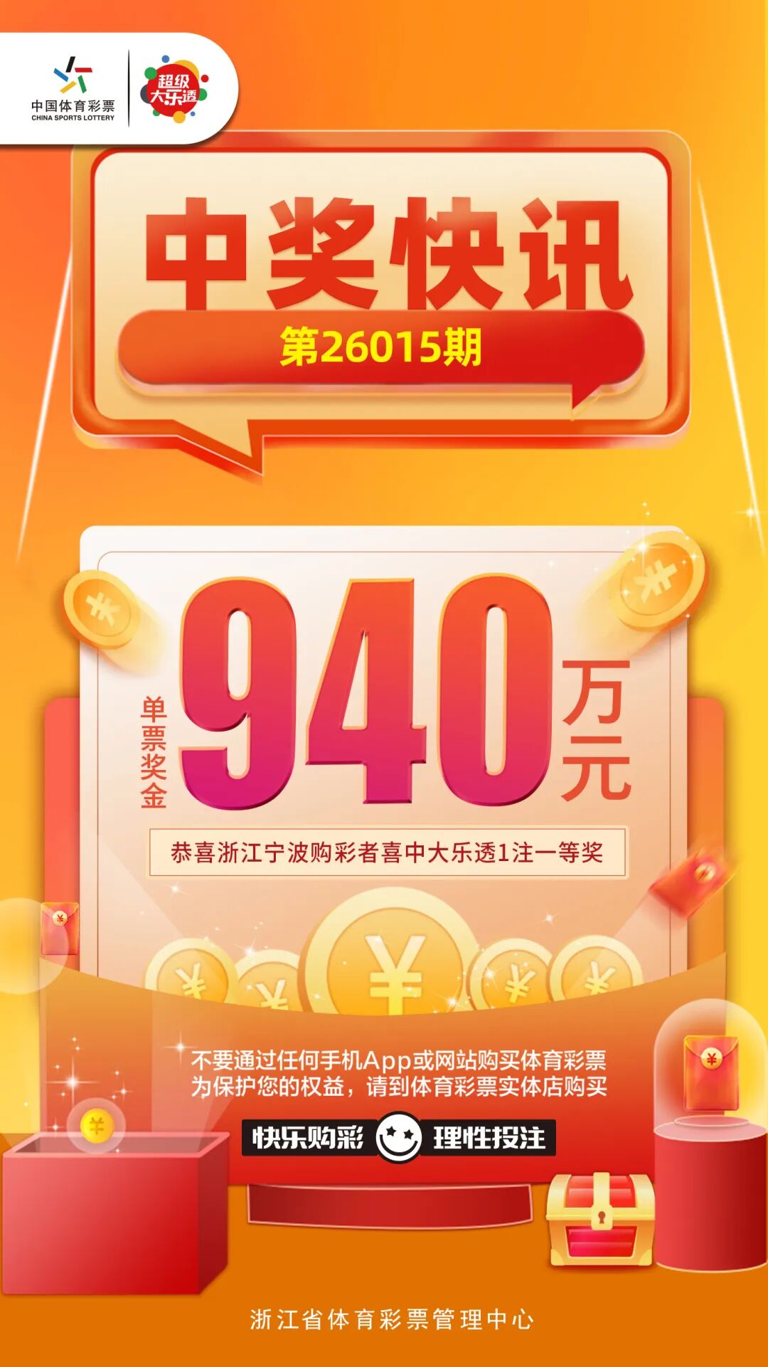 本期我省宁波中出1注一等奖,单票奖金940万元,没有追加投注,错失追加奖金。