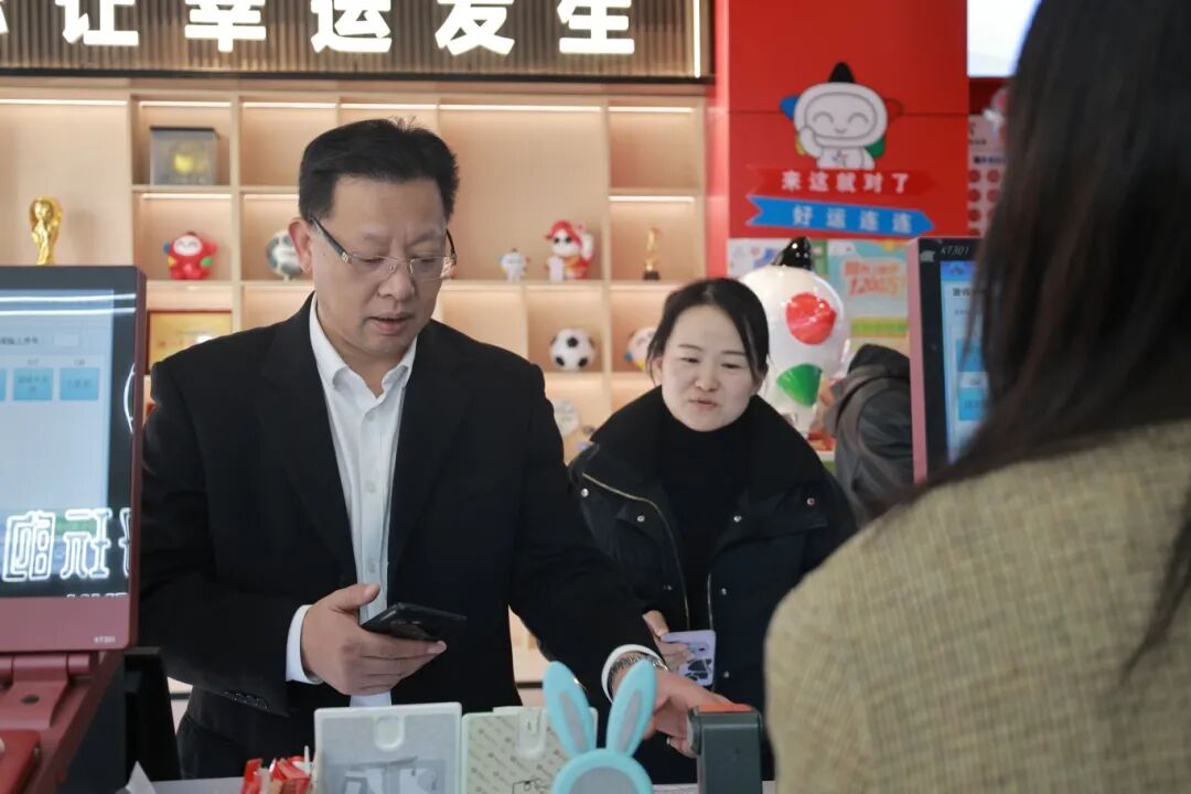 在耀达路实体店内,徐仁军与“95后”代销者小丁深入交流。其父亲经营体彩实体店二十余年,如今儿子也进入了体彩代销队伍,实现了两代传承。徐仁军指出,要系统梳理“彩二代”群体特征,通过“老带新”结对机制、专项技能培训、创业扶持政策等,推动年轻一代快速掌握合规运营、风险防控、数字化营销等核心能力。他强调:“彩二代不仅是网点延续的基石,更是创新服务的突破口。要鼓励他们结合年轻群体消费习惯,探索‘体彩+咖啡’‘体彩+文创’等跨界模式,为传统网点注入新活力。”