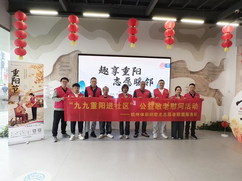 10月27日下午,杭州体彩拱墅北志愿者联盟服务队在蔡马社区大运河幸福家园一楼,参与了由社区组织的“趣享重阳,志愿暖邻”重阳节主题活动。(王程玮)