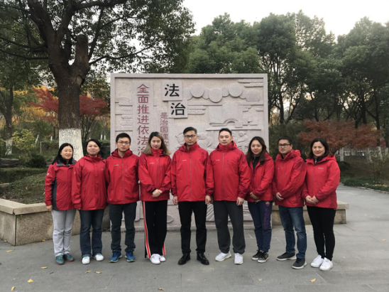 “弘扬宪法精神建设法治中国”,2017年12月4日,在第四个国家宪法日之际,嘉兴市体育彩票管理中心主任范支龙带领单位员工,前往长水街道平安文化公园开展法制学习教育活动。 (邵玲玲)