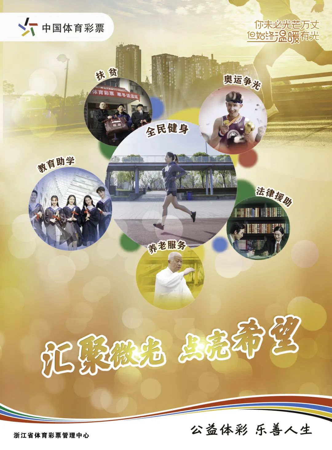 一直以来,体育彩票都被誉为“体育事业生命线”、“公益事业助推器”,浙江体彩积极践行“公益体彩 乐善人生”的品牌理念,为我省体育强省、赛事强省和共同富裕示范区建设贡献体彩坚实力量,在助力山区26县发展、 扶危助困、教育助学、未来乡村建设和青少年体教融合发展等方面不断探索、传递公益。2024年是中国体育彩票全国统一发行30年,浙江体彩将继续携手省体育基金会,充分发挥自身优势回馈社会,和全省广大购彩者携手公益,用小爱铸大善、用微光汇星河!