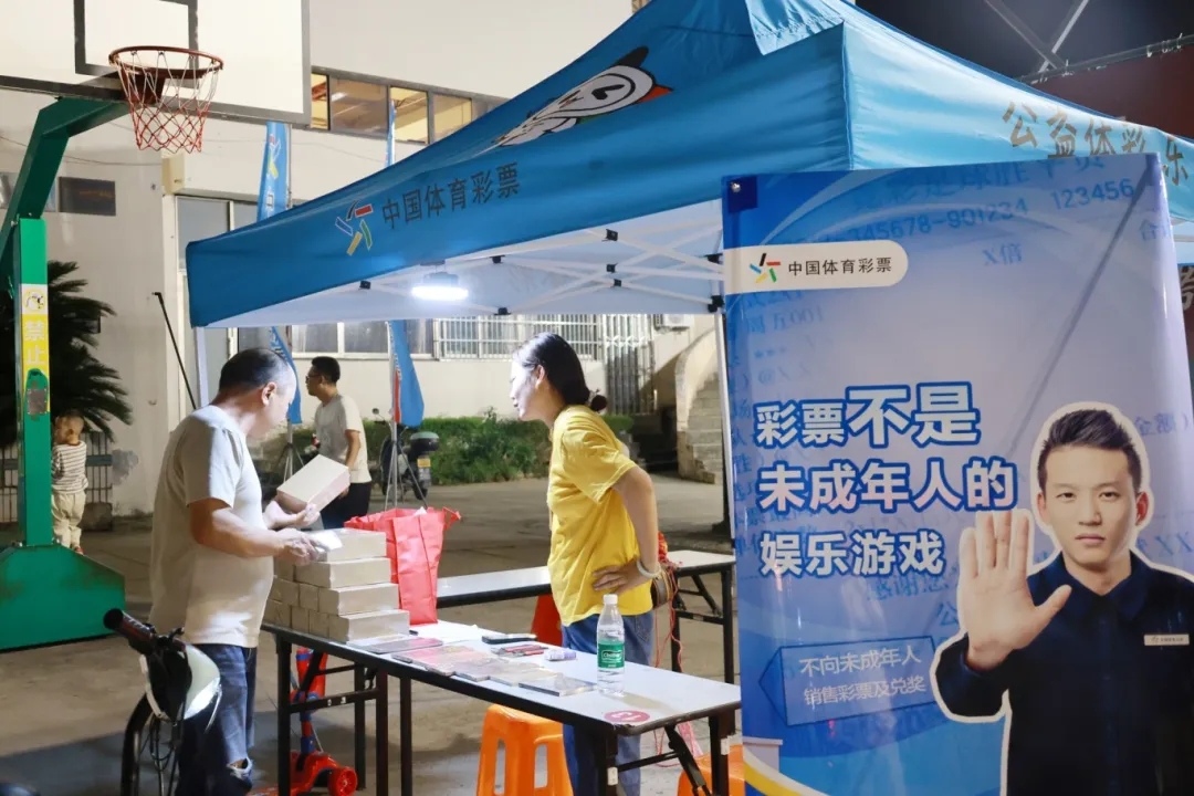 此外,台州体彩还在现场设置公益展位,工作人员热情接待每一位驻足者,介绍顶呱刮等即开型体育彩票的玩法,带来趣味互动体验。一旁的责任彩票宣传展架格外醒目,传递着“未成年人禁止购彩”“理性投注”等购彩者权益保护理念。