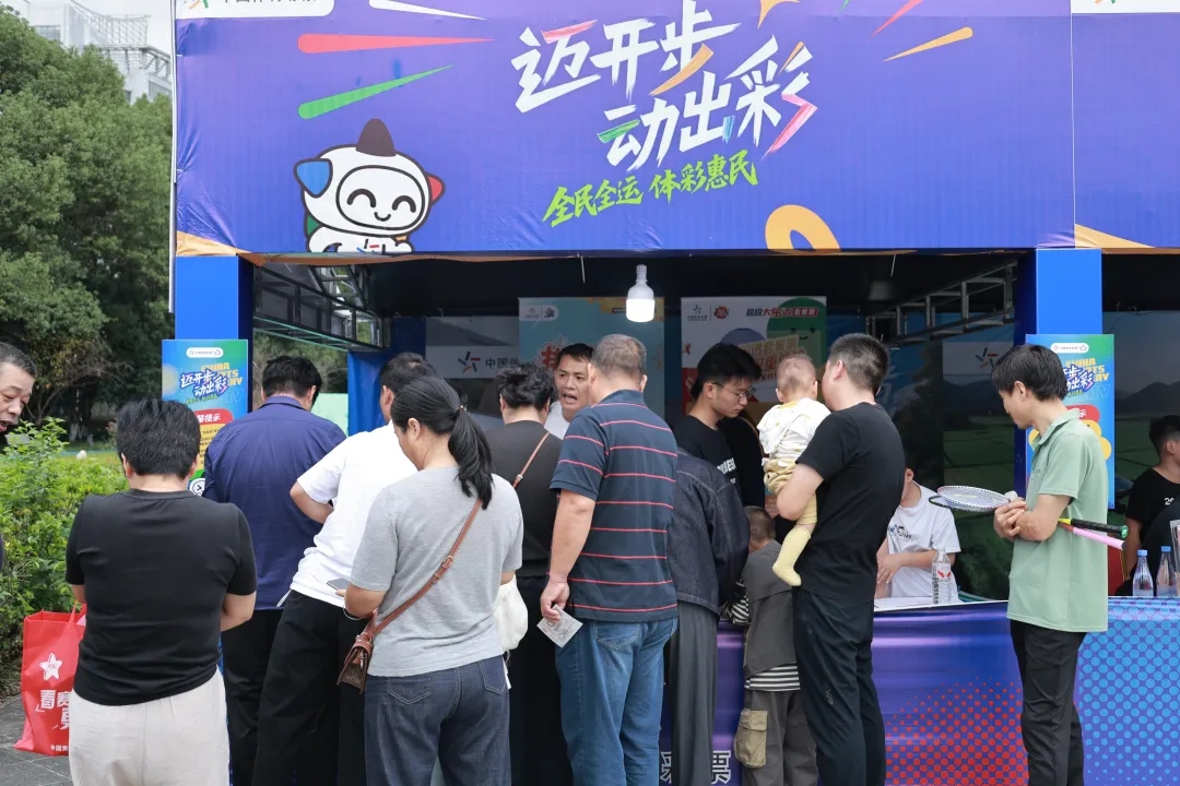 活动现场,台州体彩精心布置了一场“迈开步,动出彩”全民全运、体彩惠民嘉年华,现场两列顶呱刮即开型体育彩票体验展位吸引了大批市民驻足。