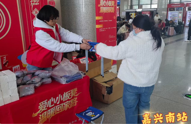 “没想到假期长了,路上的关怀也更到位了!这小凳子扎实,正好让我缓一缓。”在杭州西站候车的李先生拿到爱心小板凳后称赞道。