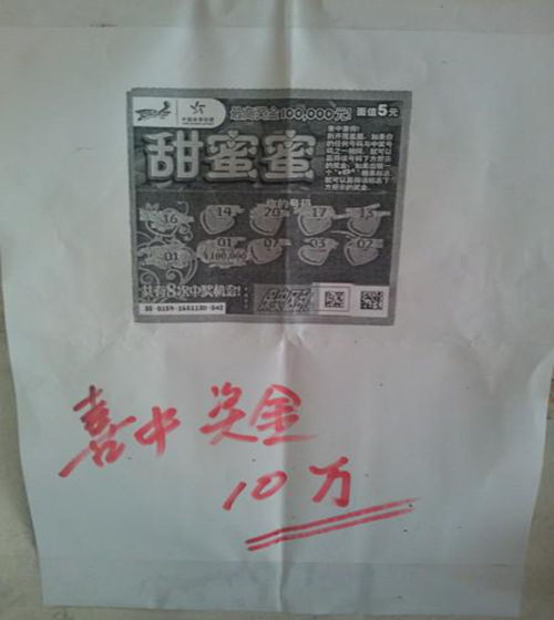X先生心想运气不错,就索性把奖金再次全部换购“甜蜜蜜”接着刮。没想到他的这个选择,为他带来了幸运。这一次兑换可就换出了大惊喜,第一张刮开没中奖,第二张中奖号码下面就刮出了“100000”的奖金标志。X先生当时都不敢相信,跟销售员再次确认了之后,才慢慢缓过神来。