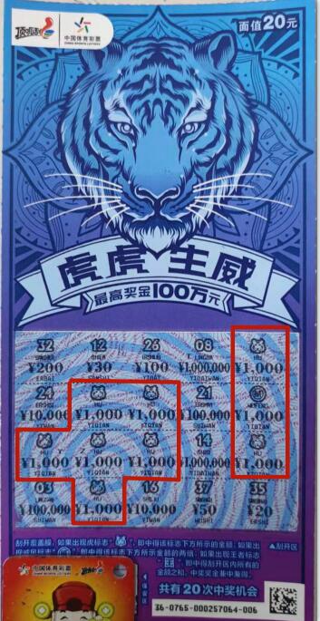 中奖购彩者是一位40岁左右的大哥,平时喜欢购买体育彩票各种玩法。中奖当日,购彩者正好休息,所以就决定去实体店购买几张即开彩票。销售员向他介绍了最近刚上市的“虎虎生威”即开票。于是他就买了几张刮起来,前面几张还是20元、50元的小奖,当刮到第6张时,出现了好几个老虎头标志,再往下刮,又出现了“威”字,越刮越来劲,最后这张彩票中得了1万元奖金。加上活动,还能额外收获2000元加油卡,真是新年行大运。