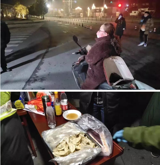 2月4日晚上将近10点,诸暨五泄镇路口防疫执勤的一线工作人员吃到了热心市民送来的热乎乎的蒸饺,让执勤人员感到非常暖心。