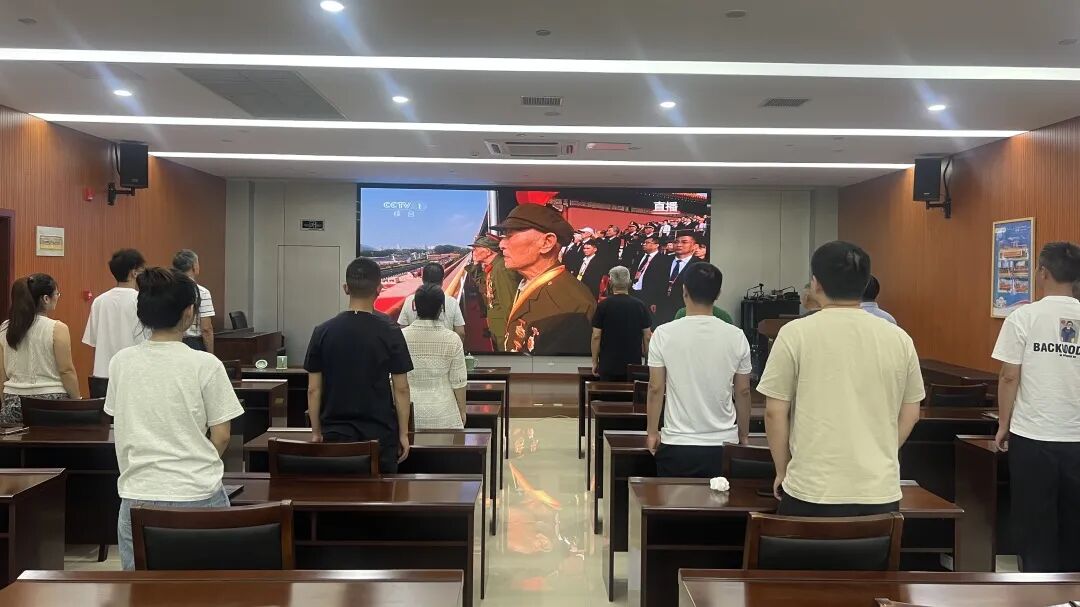 为铭记历史、缅怀先烈,弘扬伟大爱国主义精神、伟大抗战精神,9月3日9时,浙江省体育彩票管理中心组织中心全体干部职工集中收看纪念中国人民抗日战争暨世界反法西斯战争胜利80周年大会实况直播。全省各地市体彩中心同步组织观看大会实况直播。